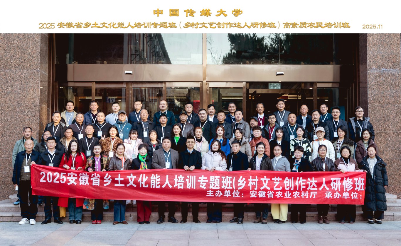 11月23日下午,由安徽省农业农村厅主办,安徽润圣文化科技集团有限公司承办、我校教育发展中心协办的“2025安徽省乡土文化能人培训专题班(乡村文艺创作达人研修班)高素质农民培训班”(以下简称培训班)在中国传媒大学圆满结业。来自安徽各地的70余名乡村文艺创作者参加了此次培训,教育发展中心党委副书记张楠出席开班并致辞。
